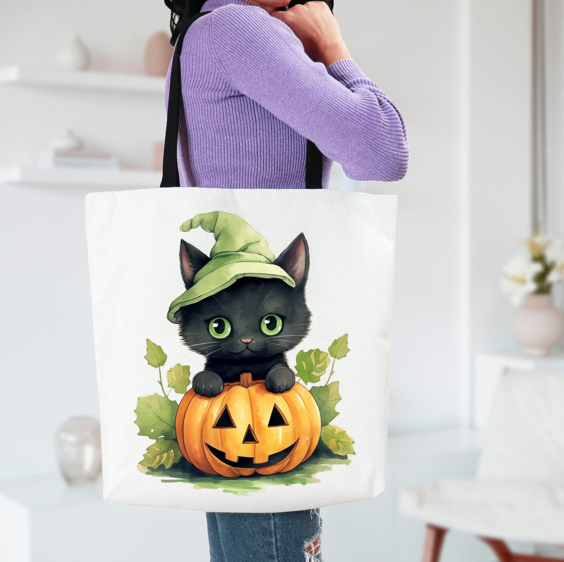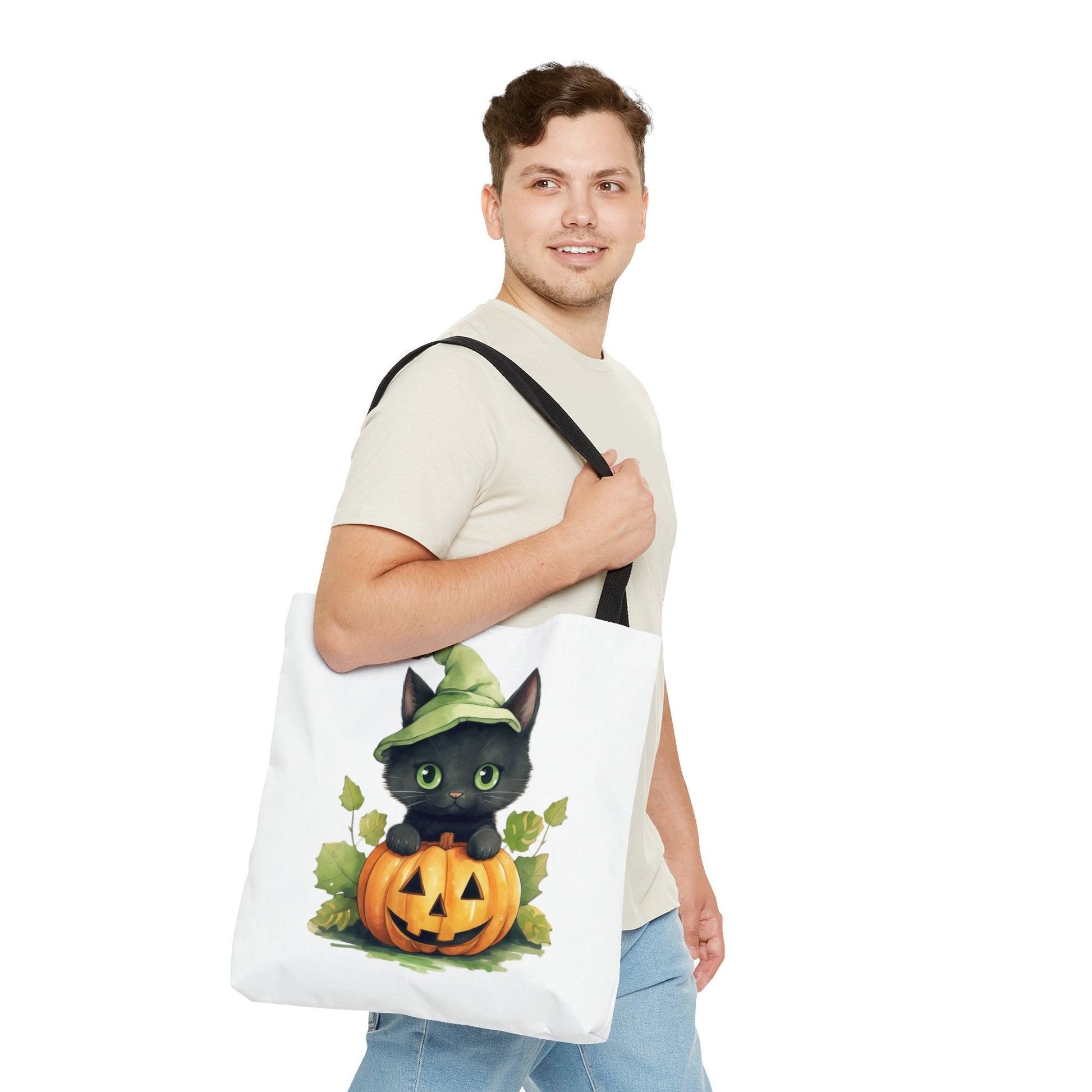 Adorable Tote bag with cute Cat, Cat Tote bag for any Occassion, Cute Cat Tote bag perfect for Halloween, Mens, Womens, Kids Tote bag